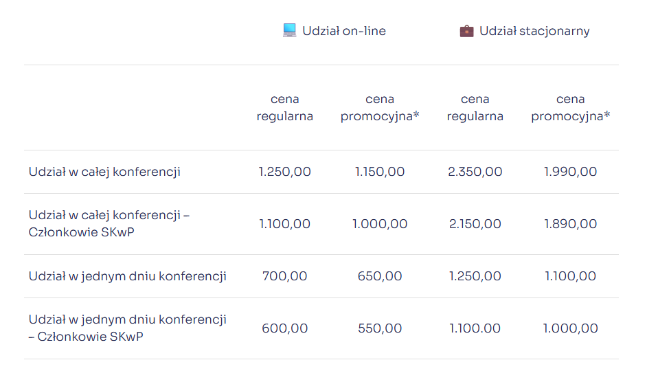 Koszt udziału zależy od formy uczestnictwa – szczegóły poniżej: